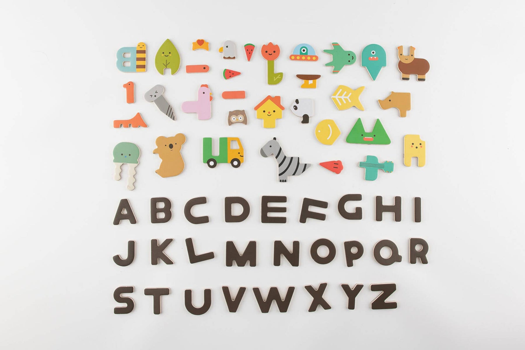 Age 3+ | Materials: Magnet, Wood, Paper | 52 magnet puzzles and 10 alphabet cards